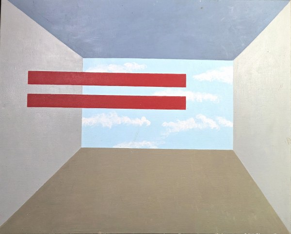 Ecole du XXème siècle. Construction géométrique sur fond de ciel..