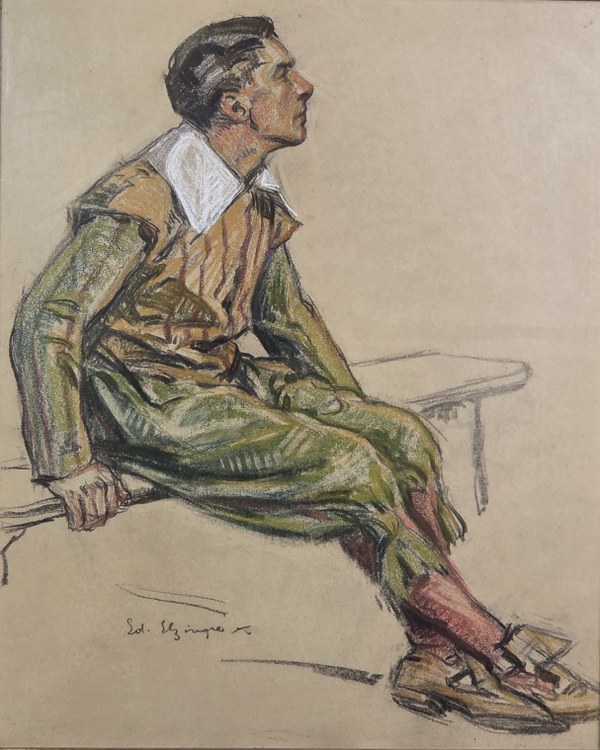 Édouard ELZINGRE (1880-1966). Portrait d'homme assis. Fusain et pastel sur..