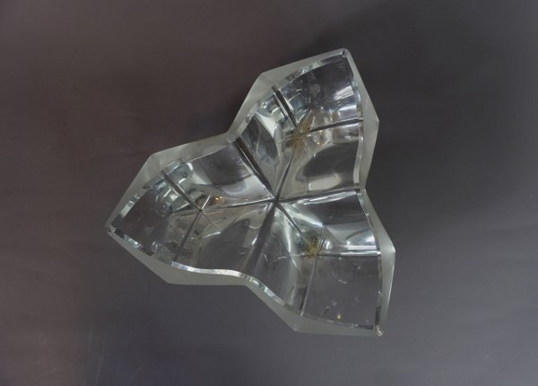 DAUM. Vide-poche en verre moulé pressé. Signé. 9 x 20..