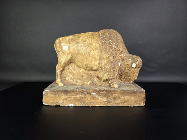 Travail 1930. Bison. Plâtre d'atelier patiné brun. Hauteur : 28..