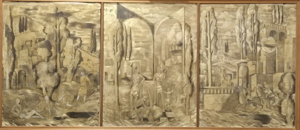 Attribué à Pierre Adrien EKMAN (1904-1993). Paysage onirique. Technique mixte,..
