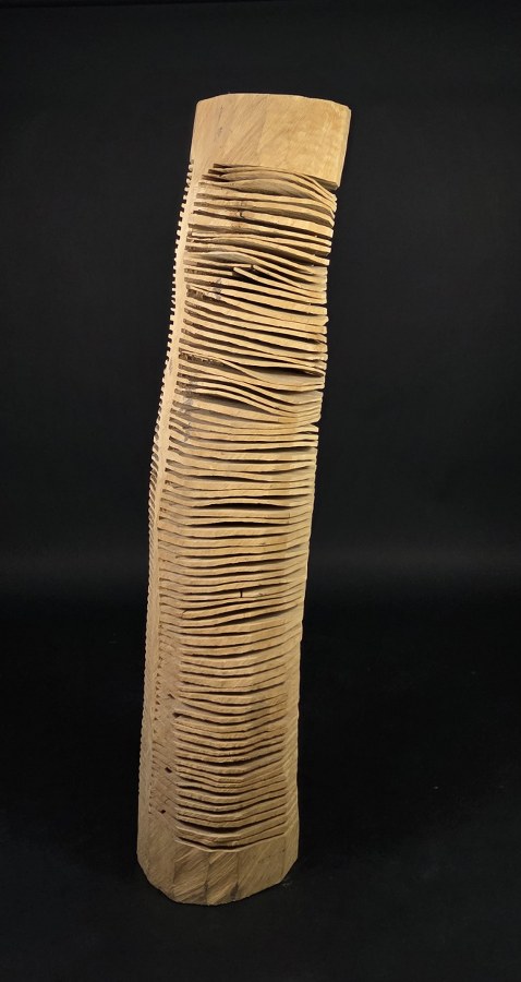 Mireille FULPIUS (né en 1951). Sculpture. Colonne à ailettes travaillée..