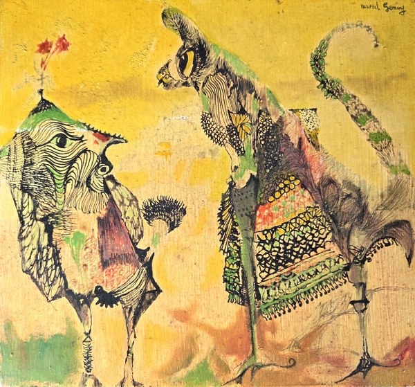 Marcel GENAY (1929-1993). Les Kangoulinx. Technique mixte sur panneau signée..
