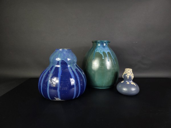 Léon POINTU (1879-1942). Ensemble de trois vases pansus et polylobés,..