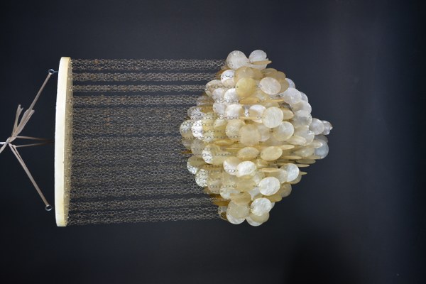 D'après Vener PANTON (1926-1998). Lustre à ornementations de disques circulaires..